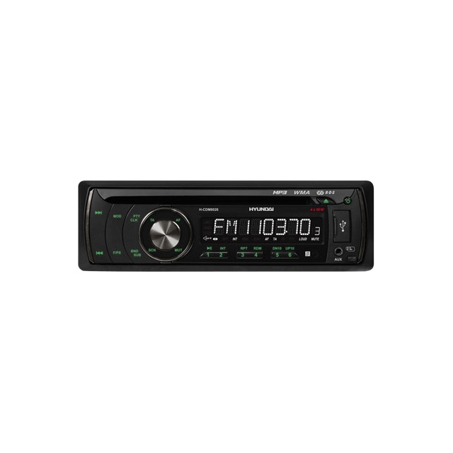 Hyundai H-CDM8026 - CD/MP3 автомобільна магнітола з USB. Оснащена слотом для карт пам"яті SD/MMC. 2-смуговий еквалайзер. Наявна функція запам"ятовування станцій з найбільш потужним прийомом. Змінна підсвітка кнопок - червона/зелена.