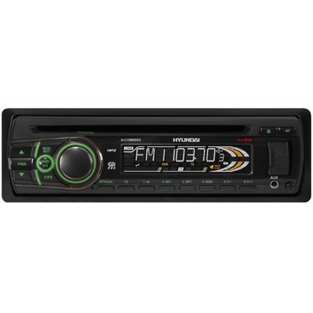 Hyundai H-CDM8093 - CD/MP3 автомобільна магнітола з USB. 2-смуговий еквалайзер. Слот для карт пам"яті SD/MMC. Наявна функція запам"ятовування станцій з найбільш потужним прийомом. Колір підсвітки кнопок - зелений.