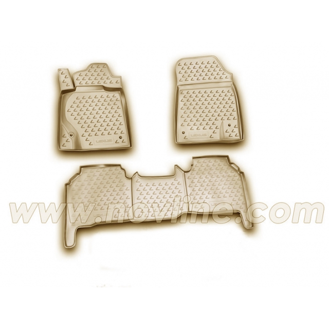 Поліуретанові килимки Novline в салон LEXUS LX570 2007->. Виготовлені в строгій відповідності з конфігурацією підлоги автомобіля. Не виділяють запаху і шкідливих речовин. Зберігають свою форму при температурі +50. Не твердіють і не розтріскуються при -40.